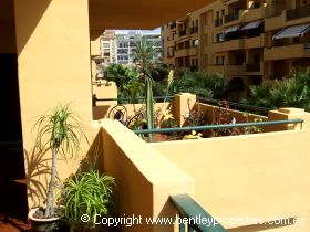 the main road in San Pedro Alcantara just 3 minute walk to the sea. Fully fitted family size kitchen with separate laundry area, A/C, large west facing terrace with sun until late. Aprox. 120 sq.mts built with terrace of 45 sq.mts, private