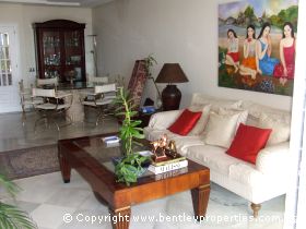 320sq.mts built on an end plot of 510 sq.mts. Built on 3 levels, from the street has entrance into walled gardens with carport for 2 cars. Has large lounge dining area with various ambients with direct access onto a large west facing upper terrace looking over the gardens and with sea views.