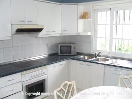 cocina completa con área del desayuno. Todos los dormitorios son