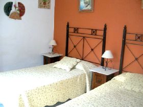 jardín privado. Dormitorio con 2 camas individuales y cuarto de baño